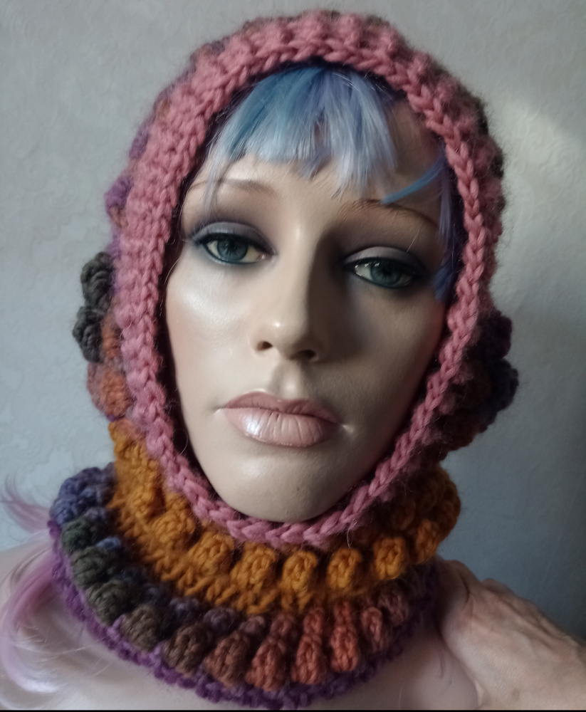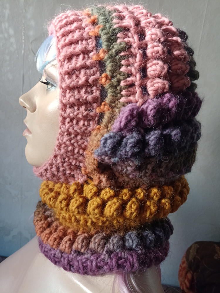 Very unique balaclava made from 100% organic Okoetex-certified wool, in warm winter colors. No toxics and happy sheep products; that's what we need! One size, fits all. Measured flat: length 41 cm width 30 cm, facial circumference about 60 cm.